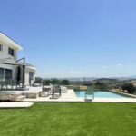 Al piano terra si trovano le zone giorno: una cucina open space attrezzata per famiglie numerose (1 frigorifero + 1 frigorifero americano) con isola centrale e zona pranzo, 1 soggiorno con vista panoramica e un secondo soggiorno dotato di biblioteca e smart TV / schermo gigante). La villa dispone di accesso a Internet ad alta velocità (Starlink). Una splendida terrazza panoramica di 50 m2 accompagna la piscina a sfioro di 10m/5m, offrendo una vista mozzafiato sulla valle di Cupello sul lato del giardino e sul mare di fronte. Il parcheggio è protetto da un cancello automatico e può ospitare 10 auto e 3 nel garage.